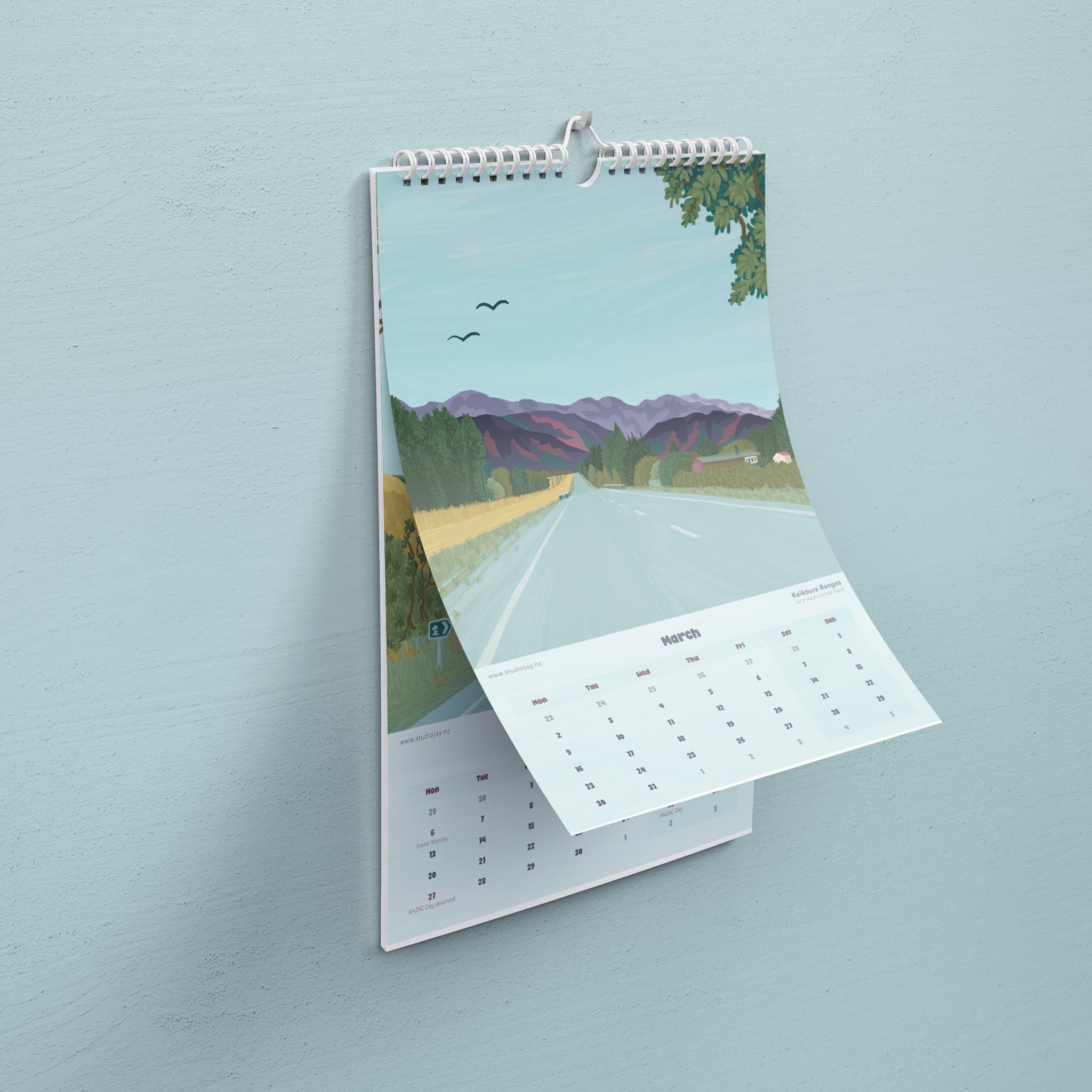 The Road Trip Collection Calendar invites you to experience the beauty and adventure of a South Island road trip. Each month features a hand-drawn illustration inspired by real places and personal adventures, capturing the feeling of freedom, open roads, and breathtaking New Zealand landscapes.