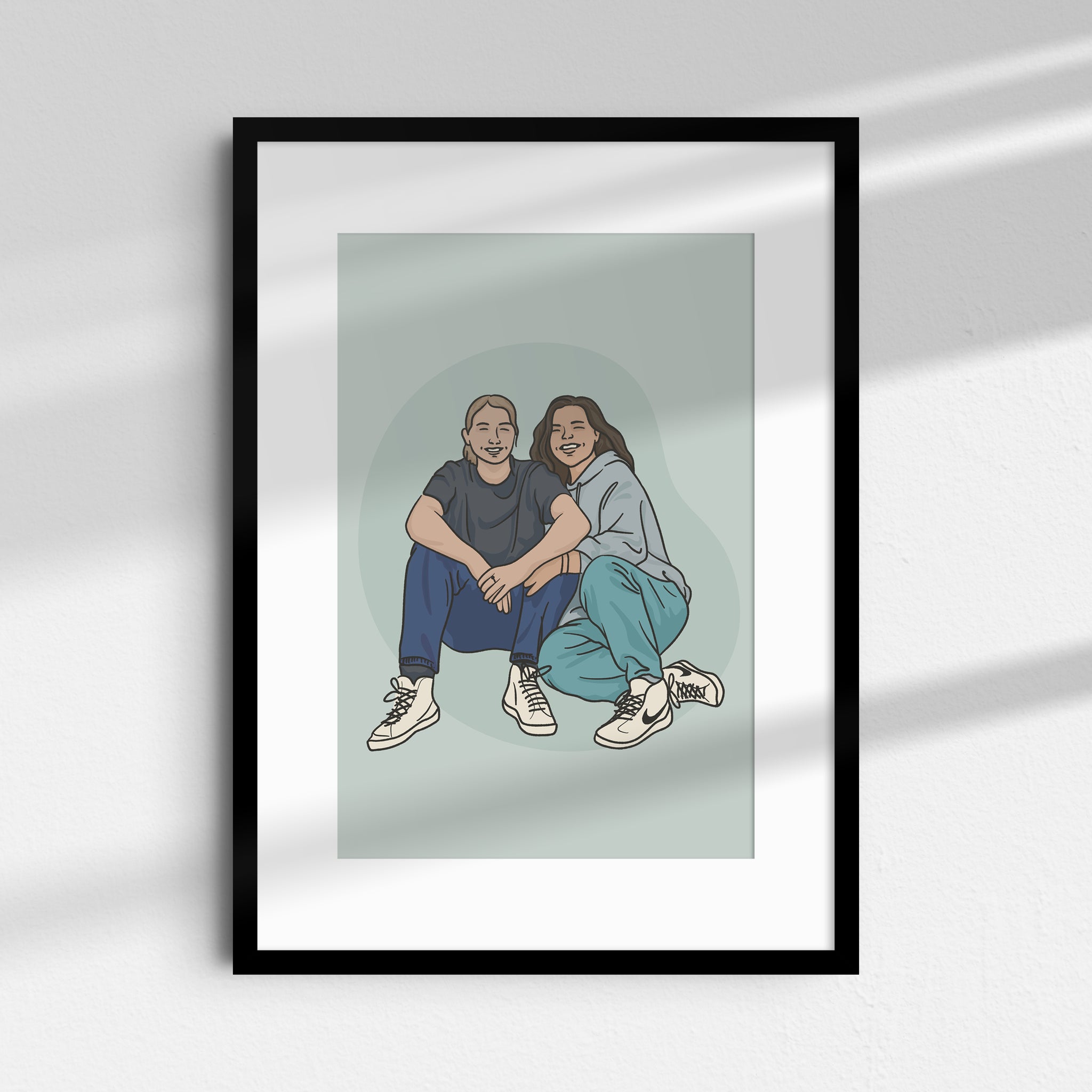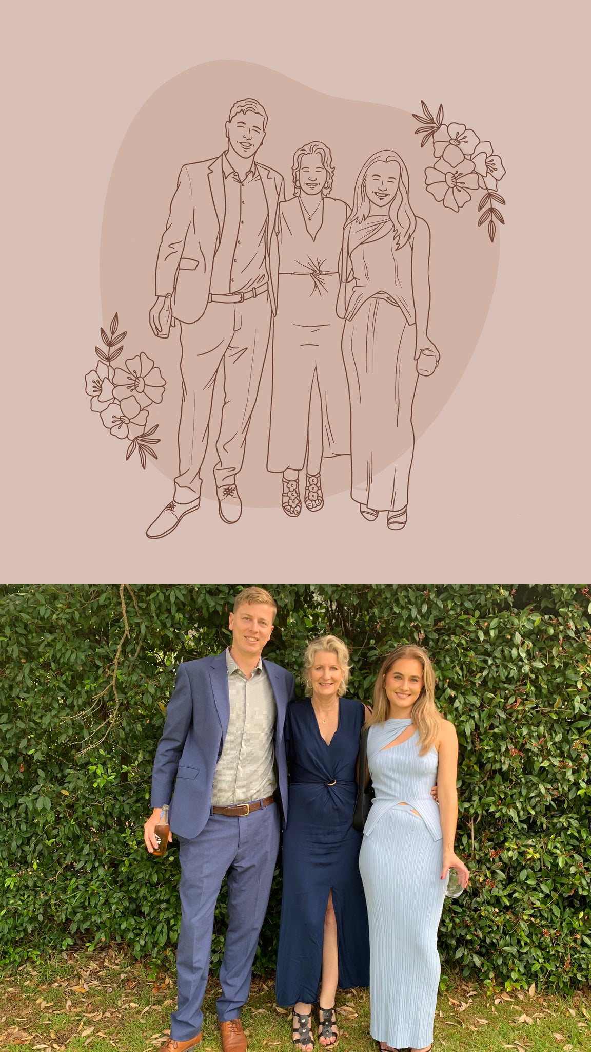 Custom minimalist portrait illustration with black or dark coloured outlines - a unique way to celebrate you and your loved ones!