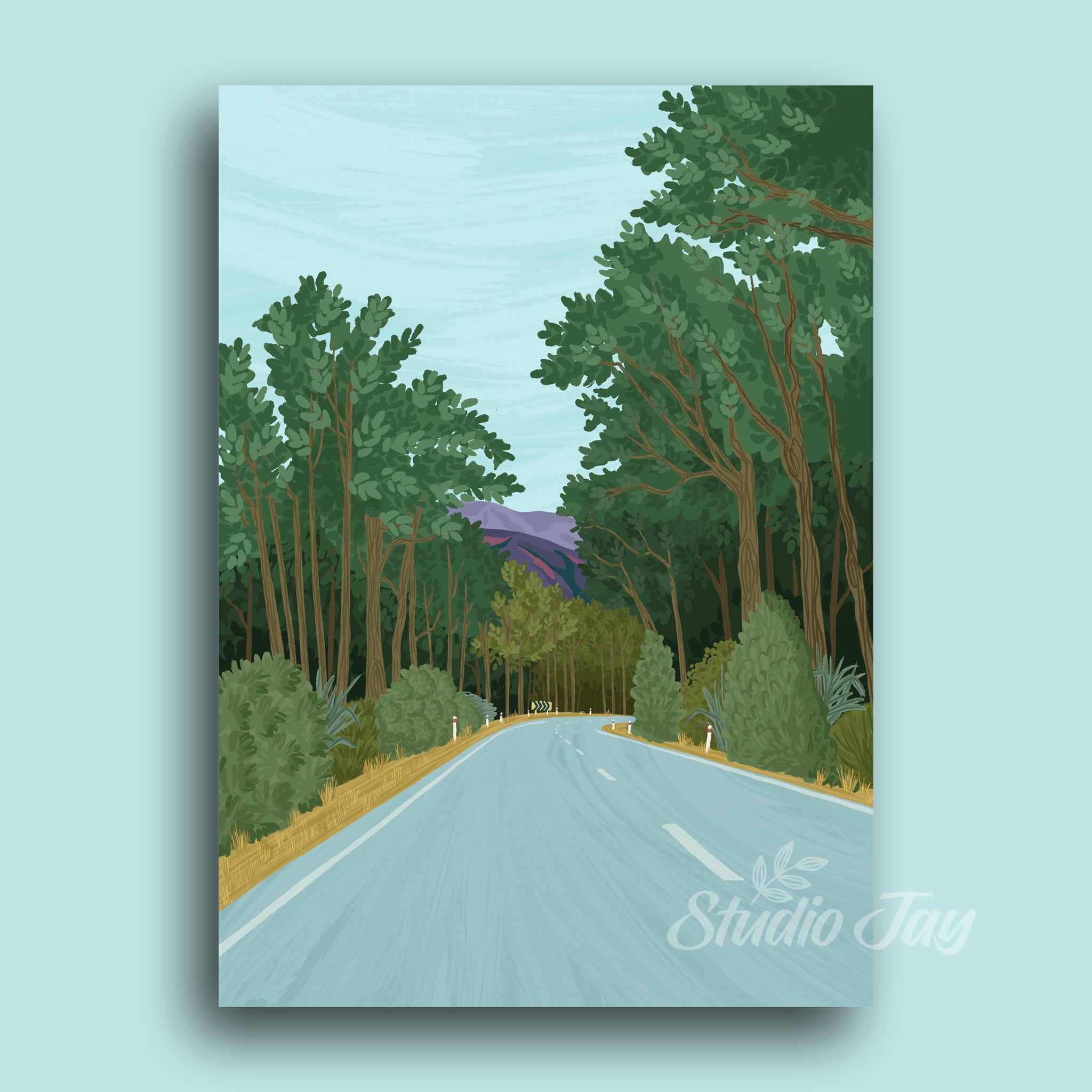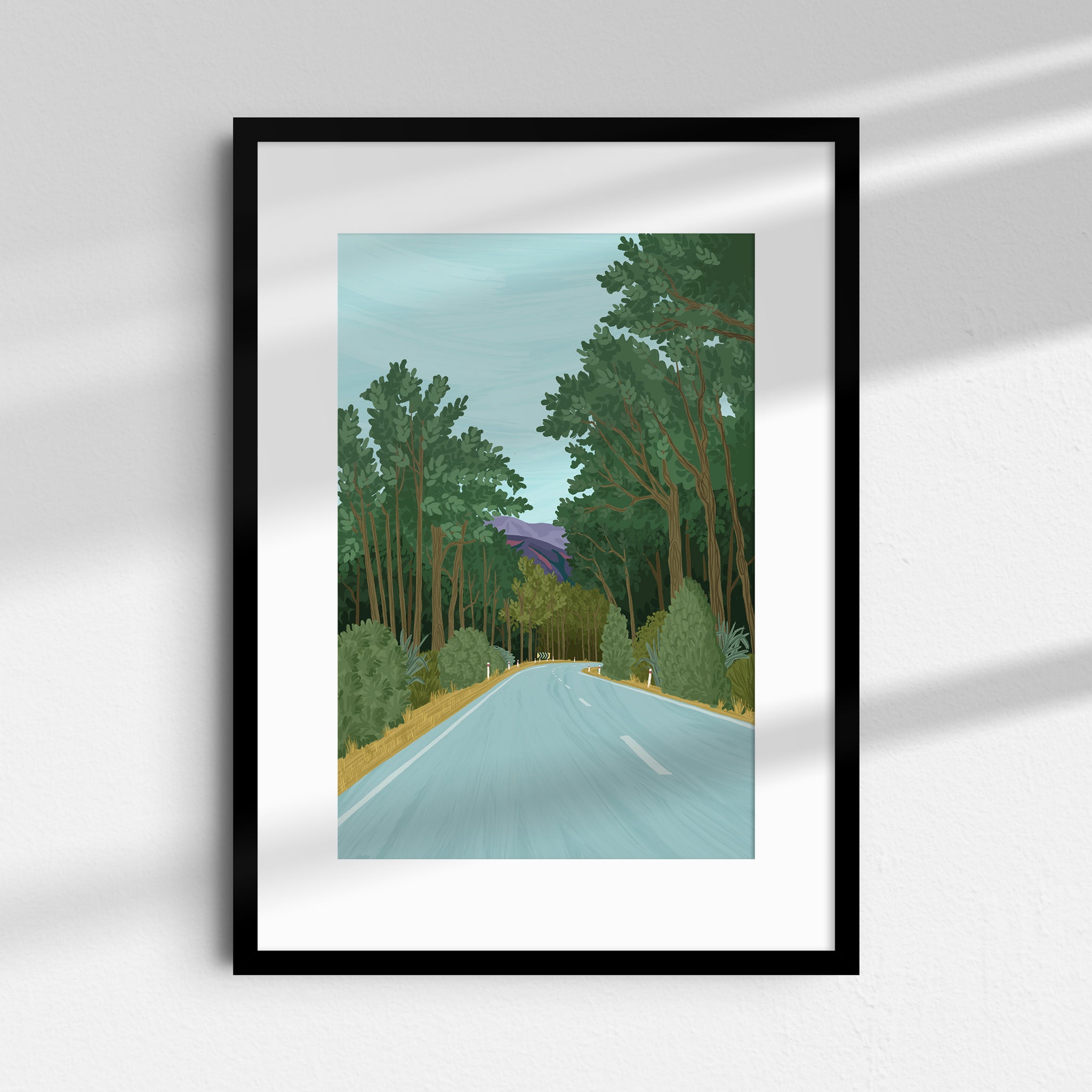 Original illustration print titled "West Coast Green" from The Road Trip Collection.