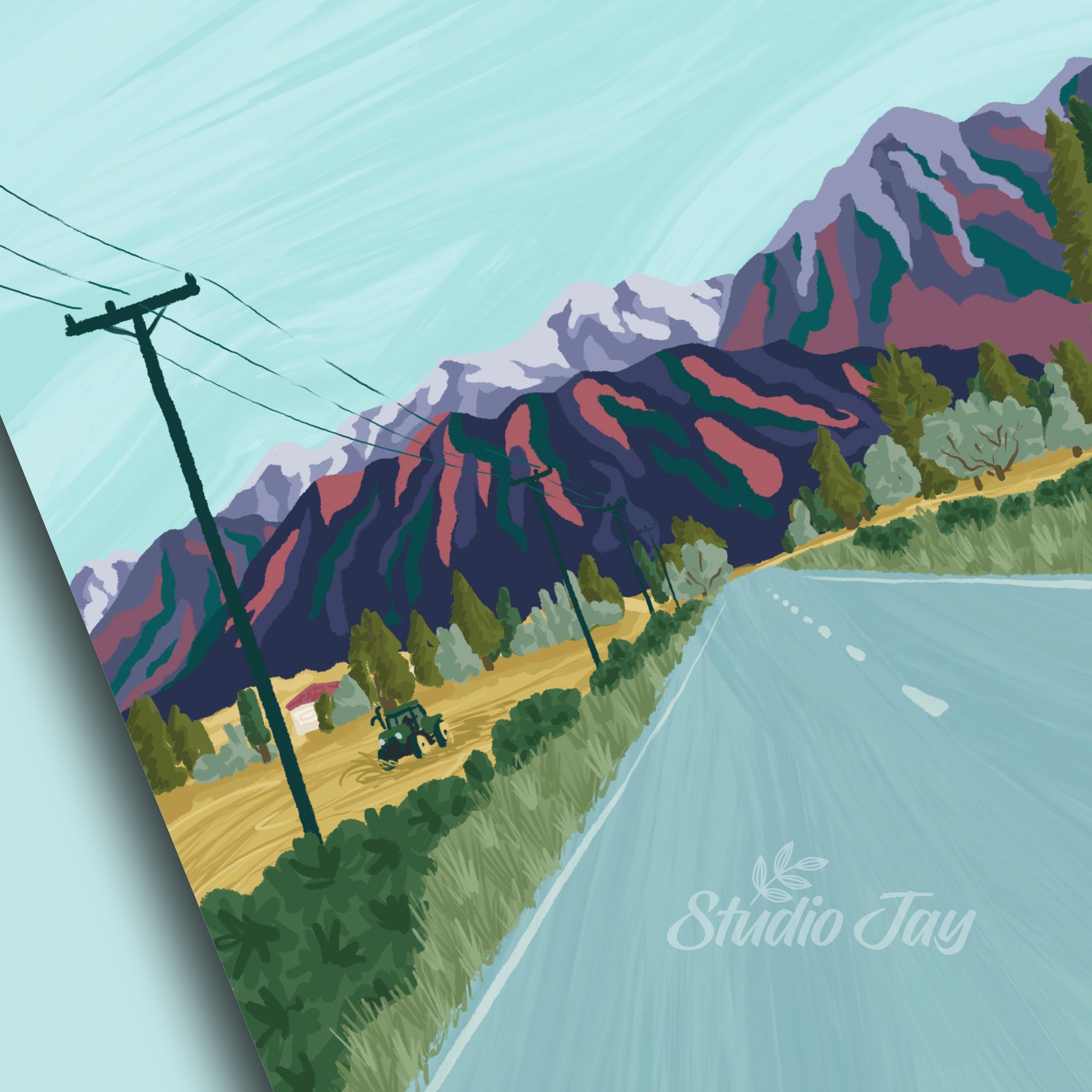 Original illustration print titled "Springfield Stop" from The Road Trip Collection