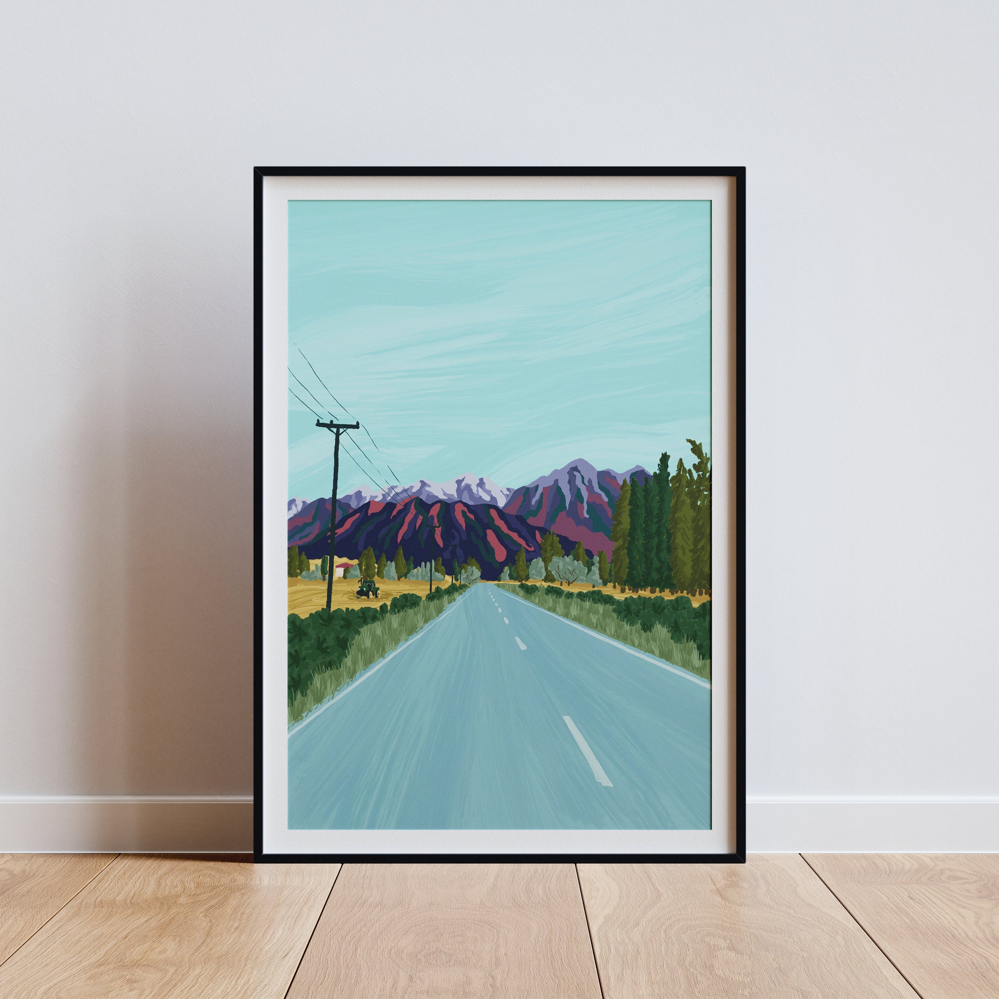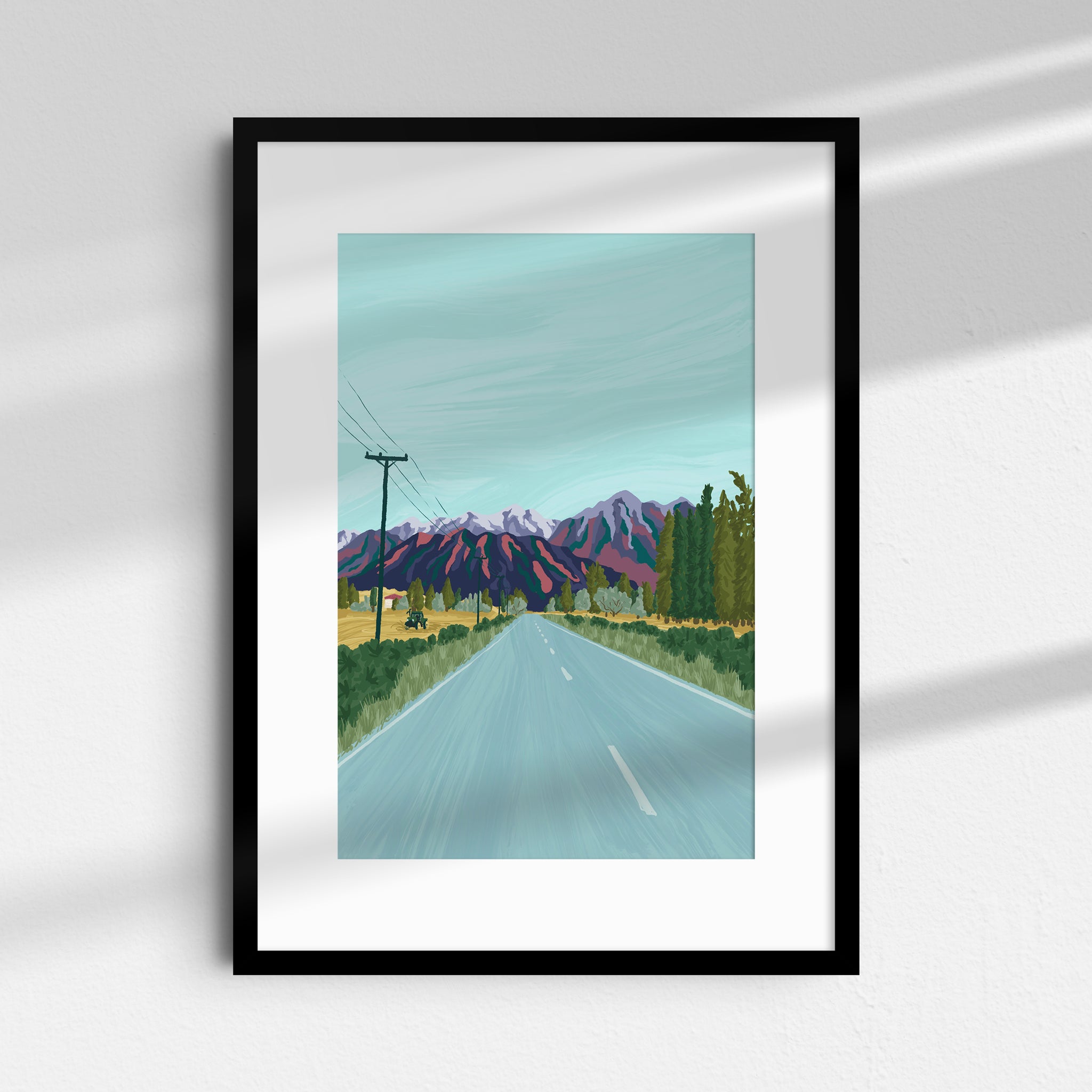 Capturing the long, open stretch near Lake Grasmere, where the highway seems to dissolve into the distant peaks of Arthur’s Pass.